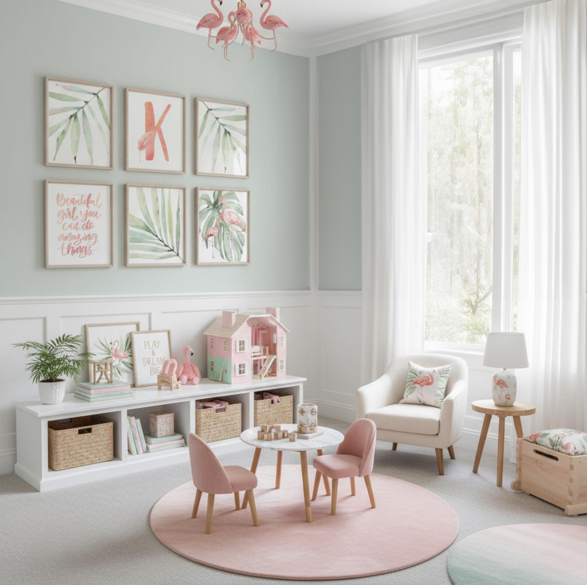 I take pride in creating all of my designs. These timeless tropical flamingo wall art prints will redefine the walls of a girl's nursery, playroom or bedroom. Each design is curated with a passion and vision to create inspired spaces for you and your little ones.