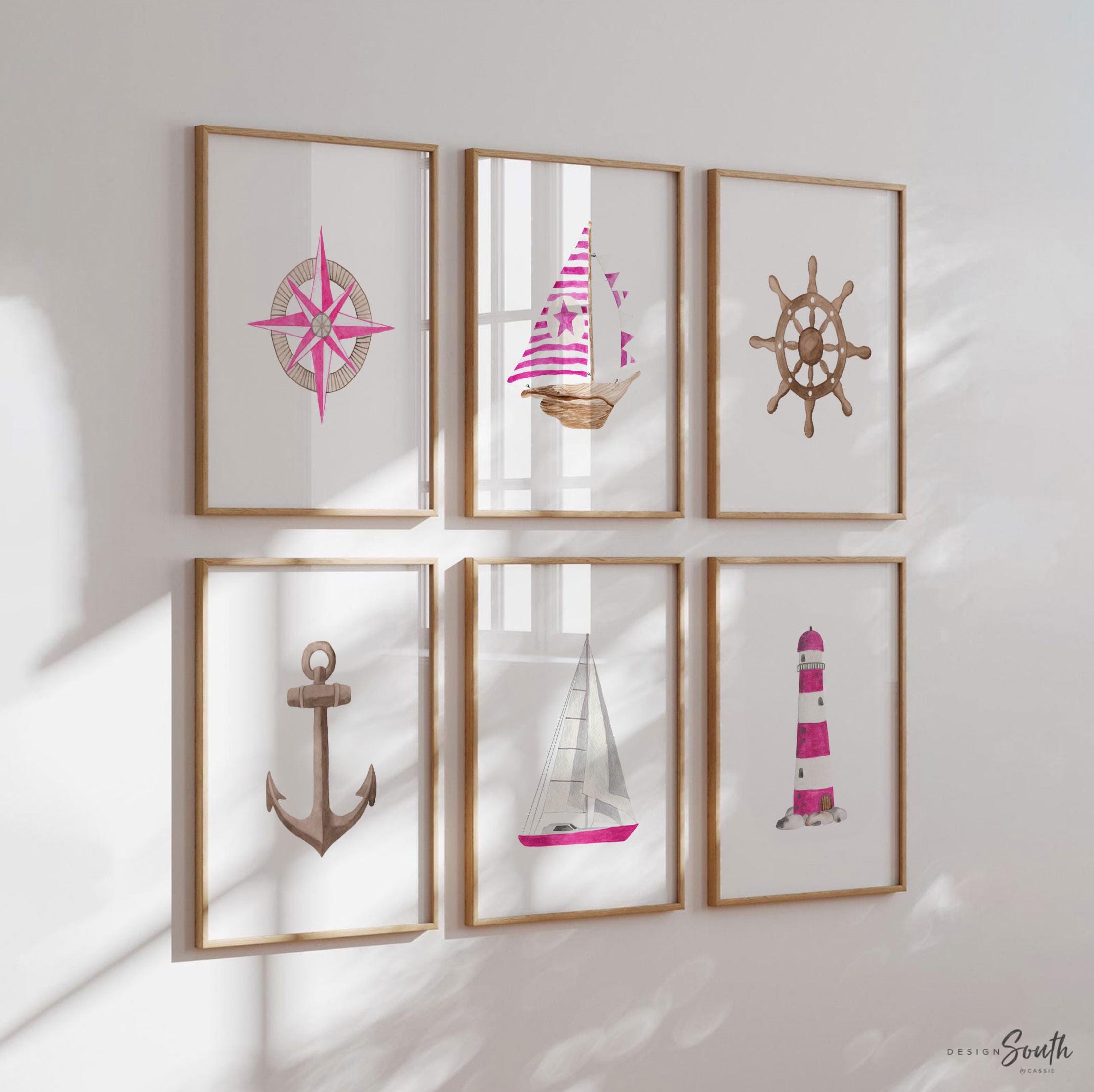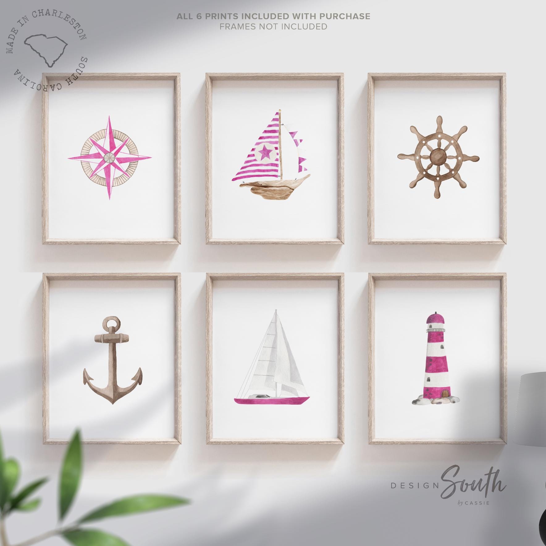 Product description: Nautical themed wall art prints featuring watercolor detailed lighthouse, ship wheel, compass, sailboats and anchor. Other options are also available in my shop.