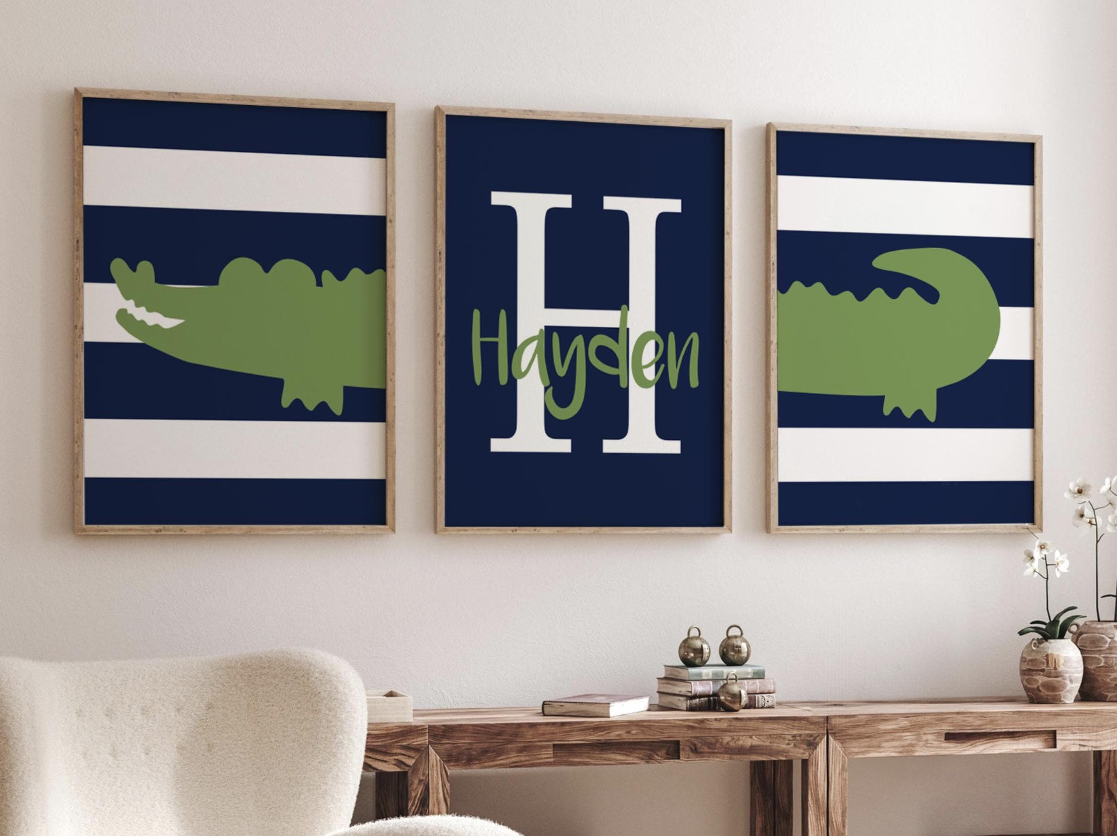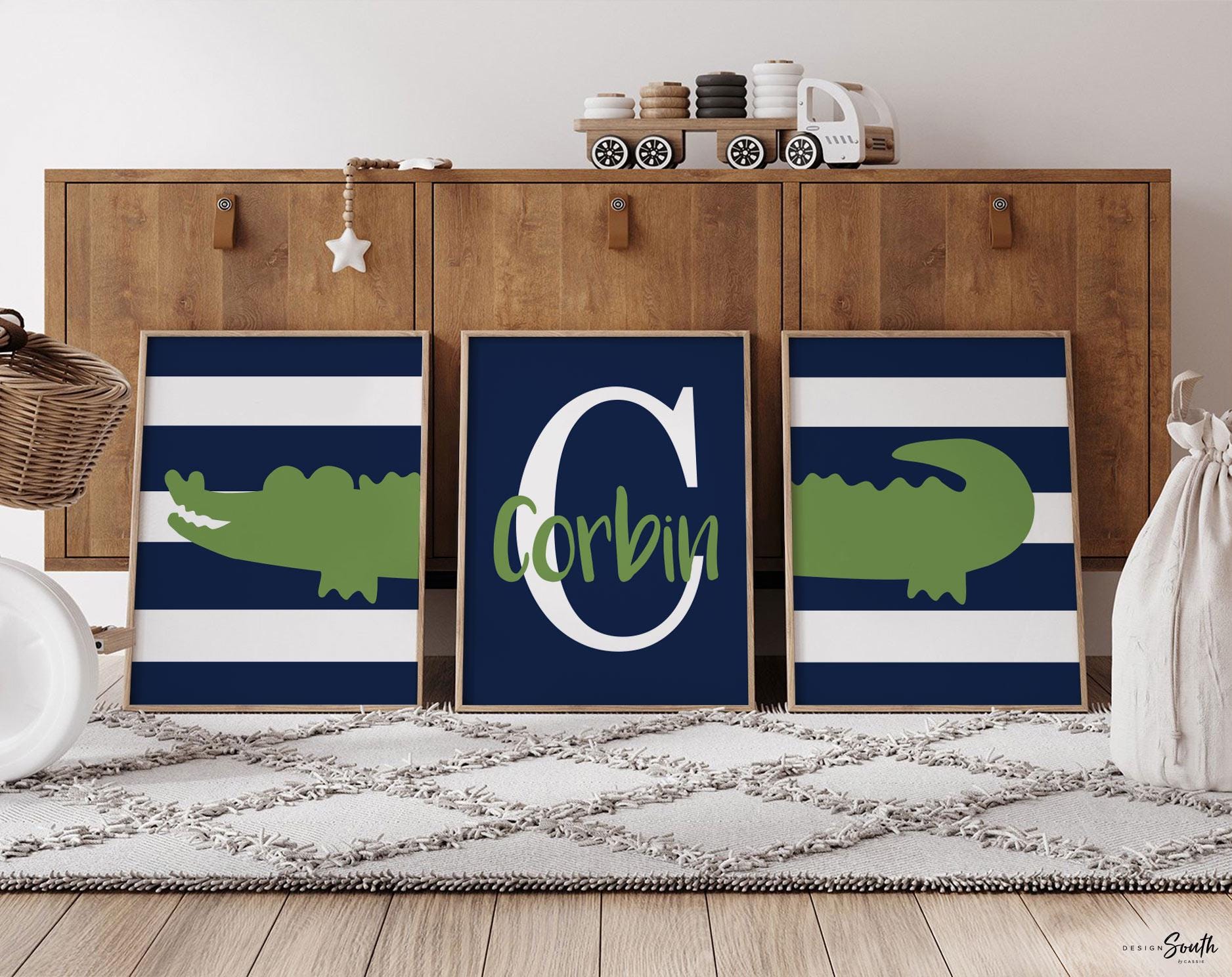 Thank you for choosing Design South. I take pride in creating all of my designs. These adorable alligator wall prints are perfect for a boy's nursery, bedroom, or playroom.