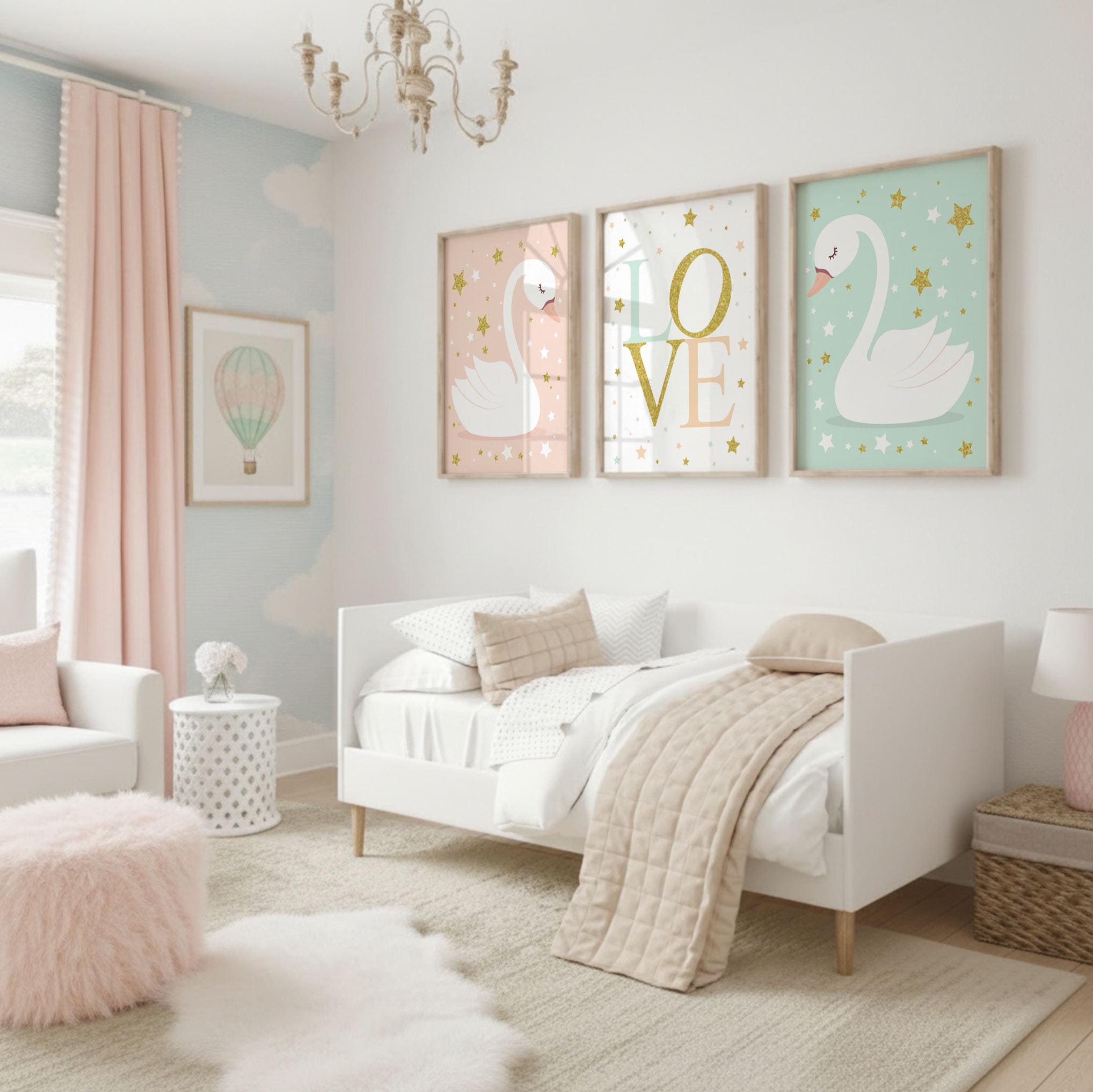 Product description: Elegant swan designs in cupcake pink and gold faux glitter accented with stars and matching LOVE print. Other options are also available in my shop.