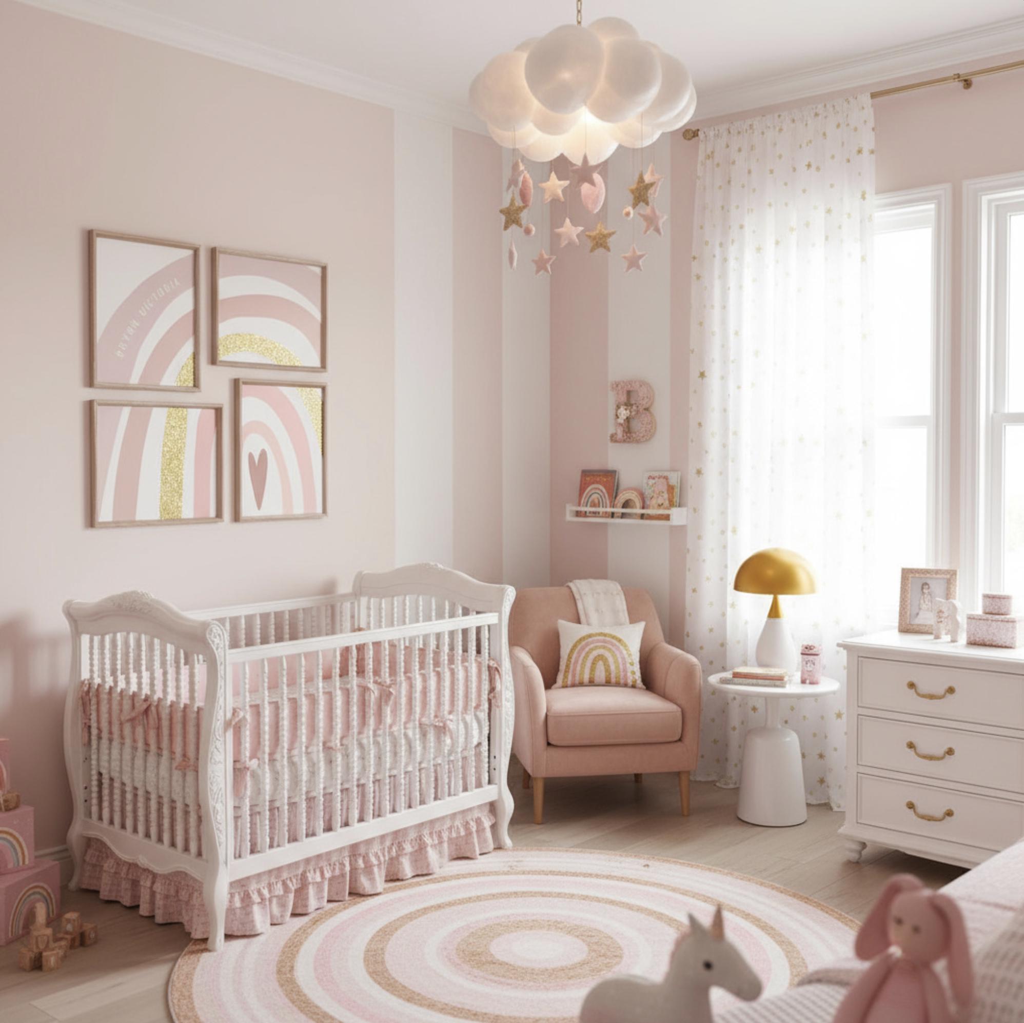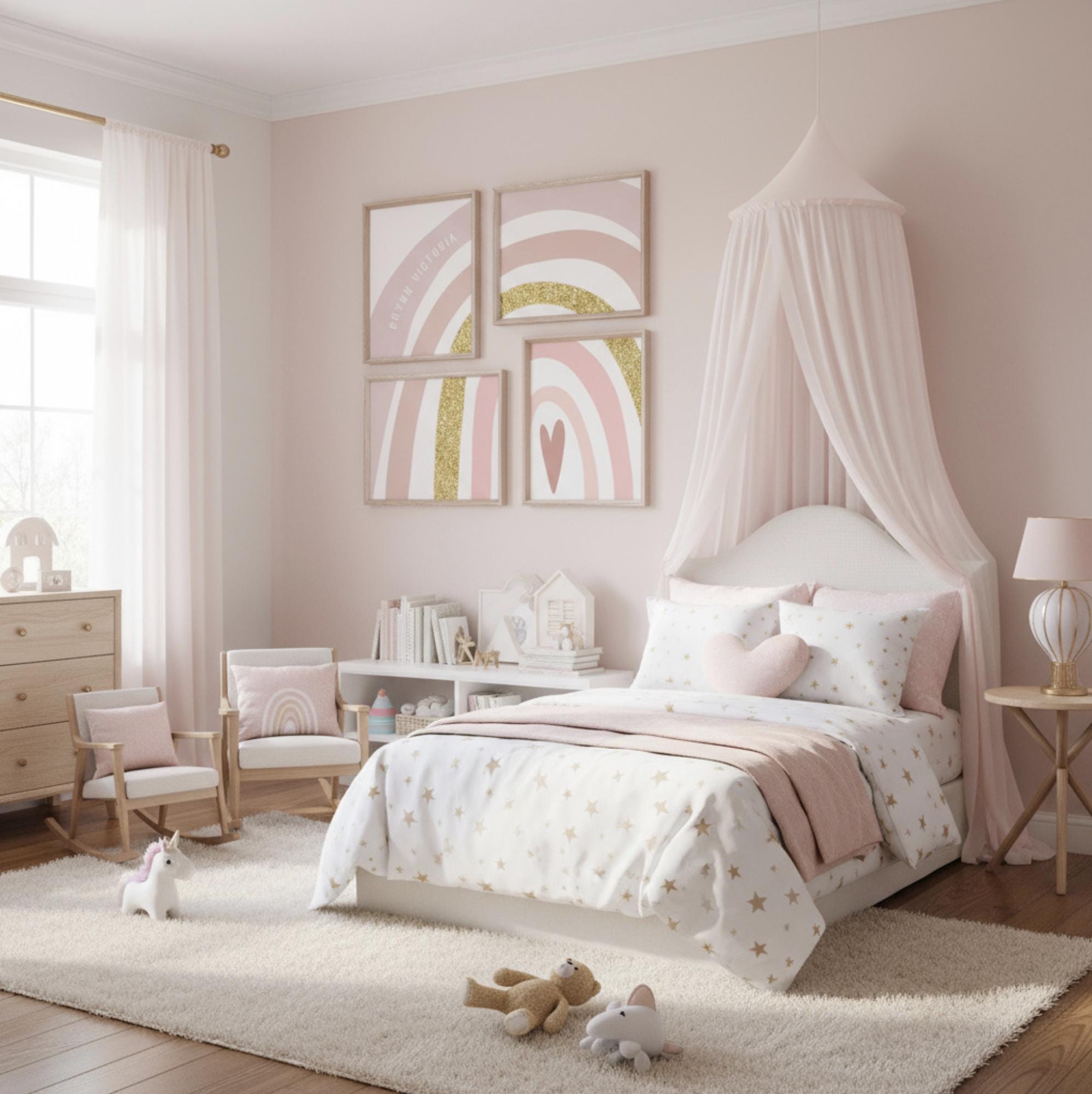 I take pride in creating all of my designs. These contemporary rainbow theme wall art prints will redefine the walls of a girl's nursery, playroom or bedroom. Each design is curated with a passion and vision to create inspired spaces for you and your little ones.