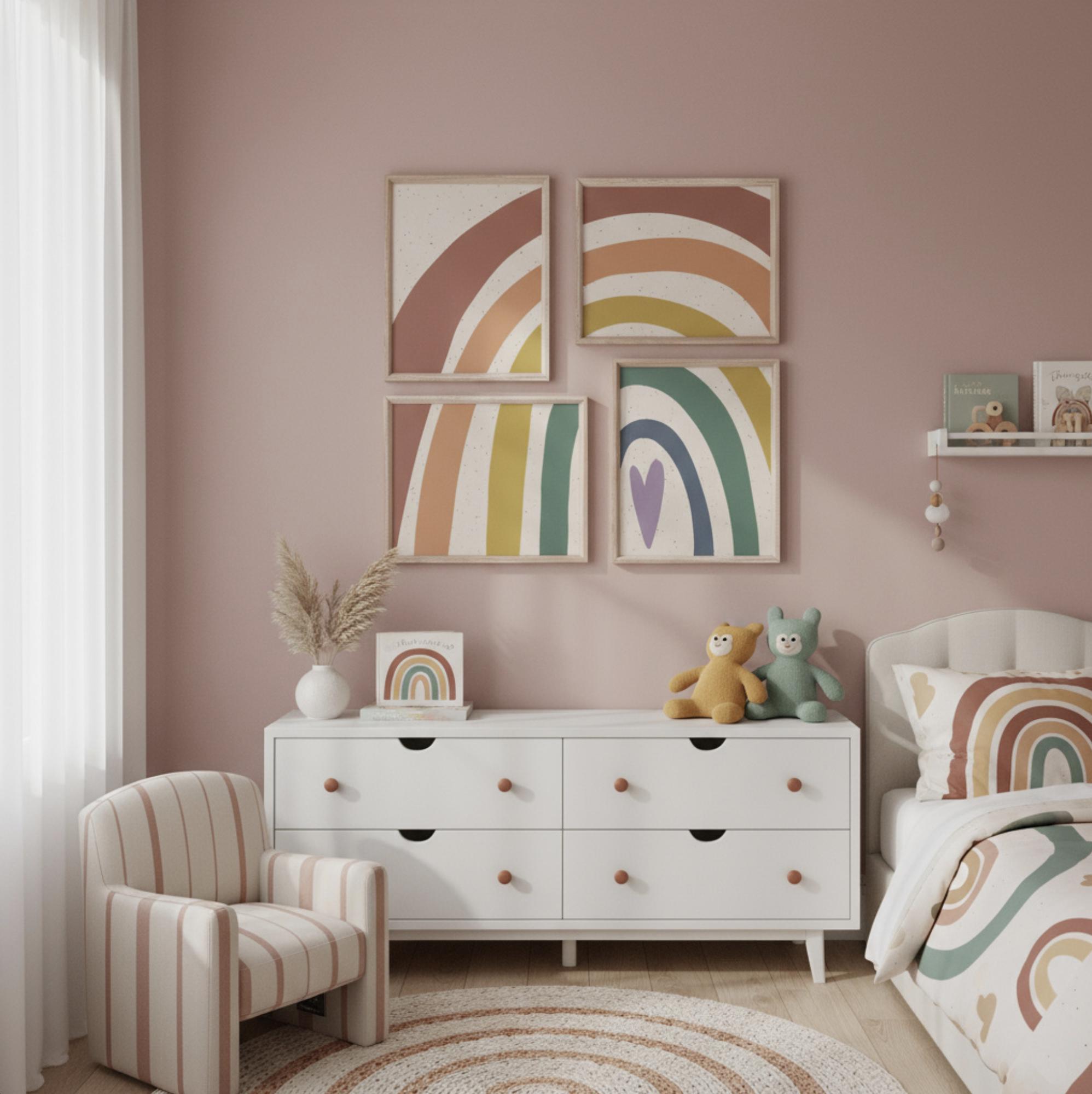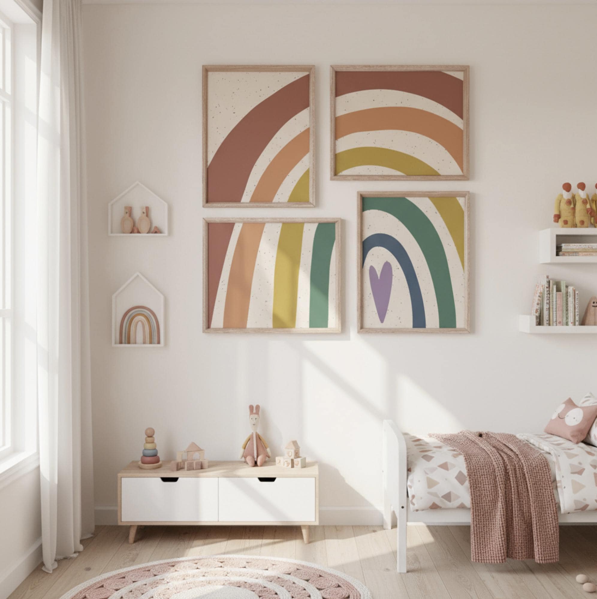 I take pride in creating all of my designs. These contemporary & trendy rainbow wall art prints will redefine the walls of a child's nursery, playroom or bedroom. Each design is curated with a passion and vision to create inspired spaces for you and your little ones.
