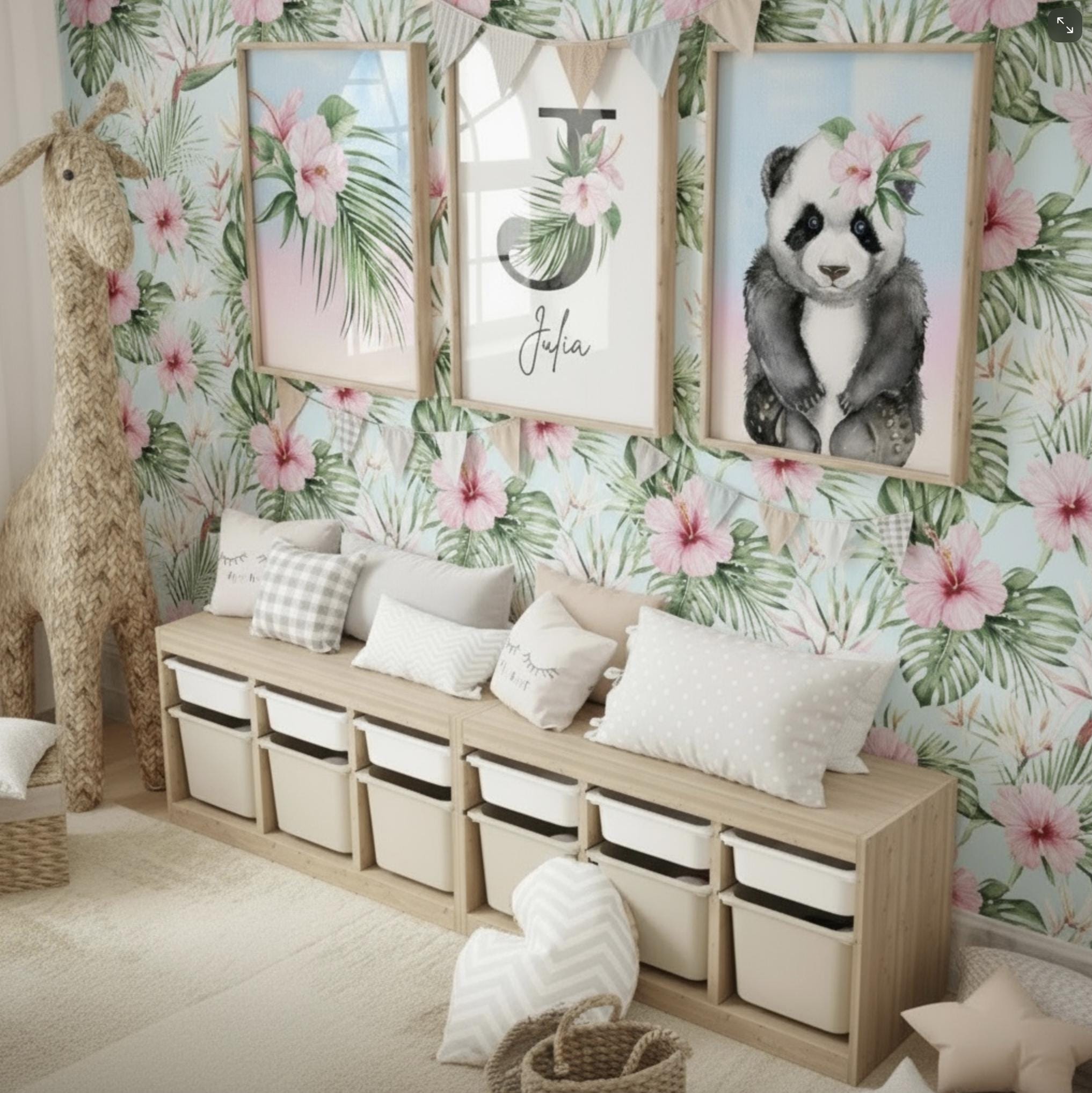 I take pride in creating all of my designs. These timeless tropical theme panda bear wall art prints will redefine the walls of a girl's nursery, playroom or bedroom. Each design is curated with a passion and vision to create inspired spaces for you and your little ones.