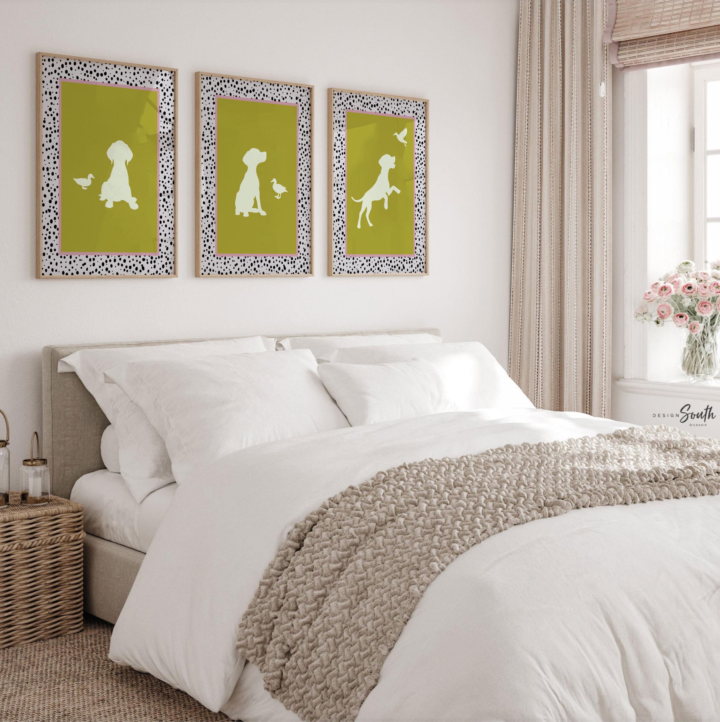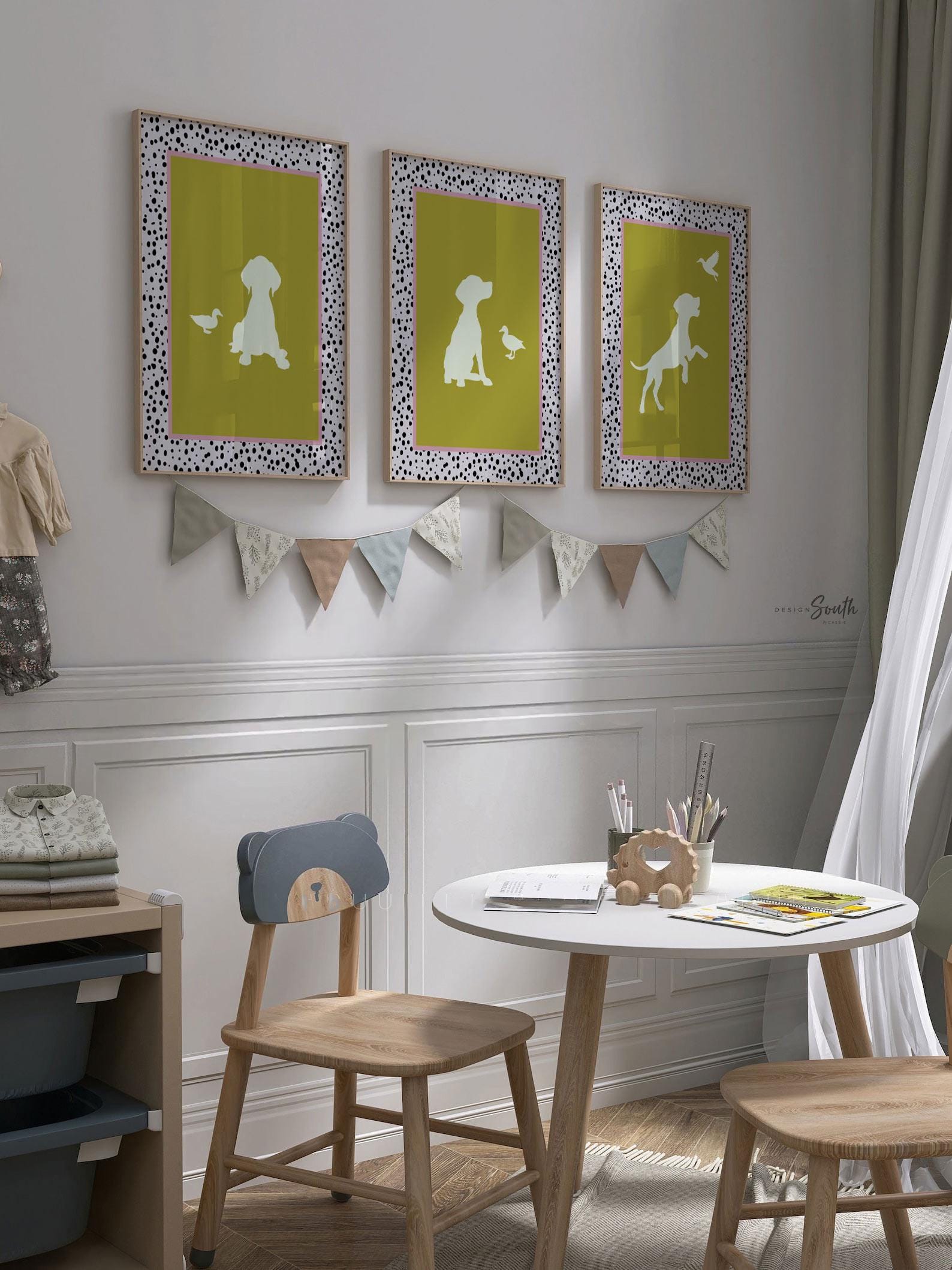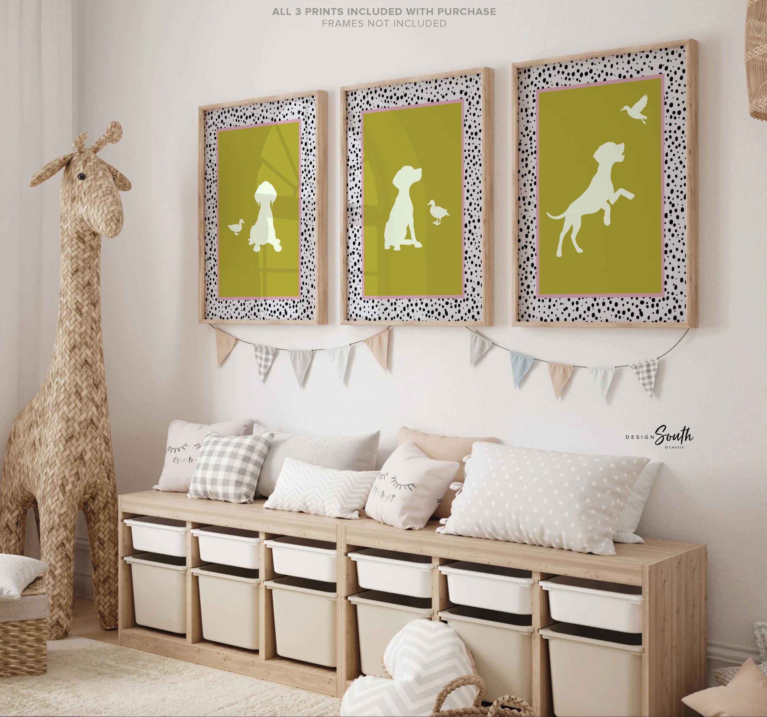I take pride in creating all of my designs. These timeless puppy wall art prints will redefine the walls of a child's nursery, bathroom, playroom or bedroom. Each design is curated with a passion and vision to create inspired spaces for you and your little ones.