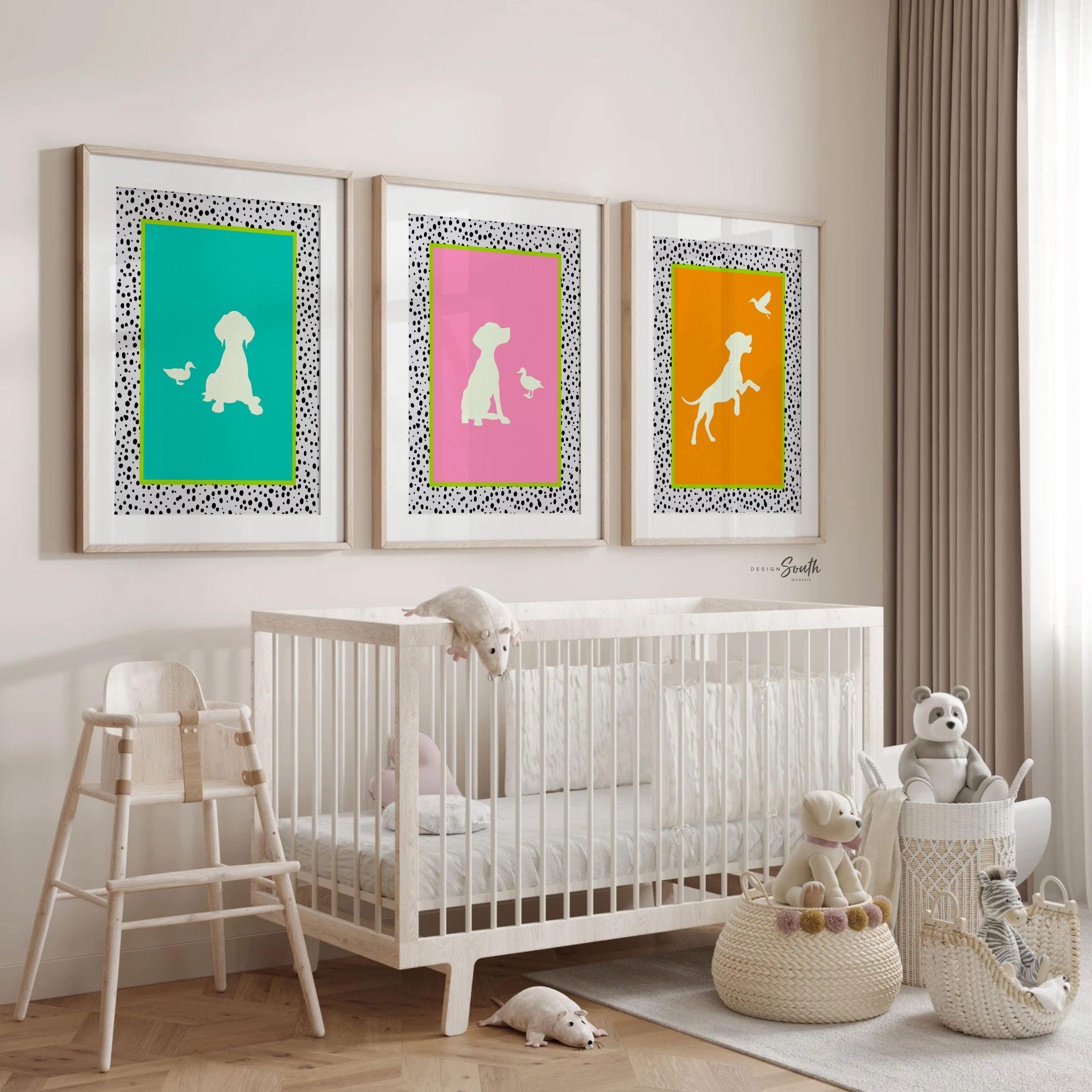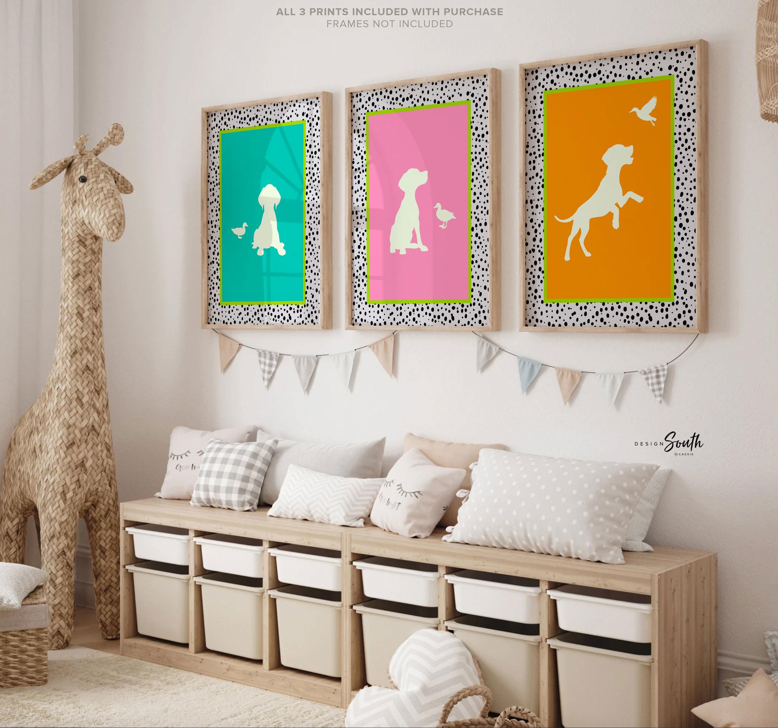 I take pride in creating all of my designs. These fun puppy wall art prints will redefine the walls of a child's nursery, bathroom, playroom or bedroom. Each design is curated with a passion and vision to create inspired spaces for you and your little ones.