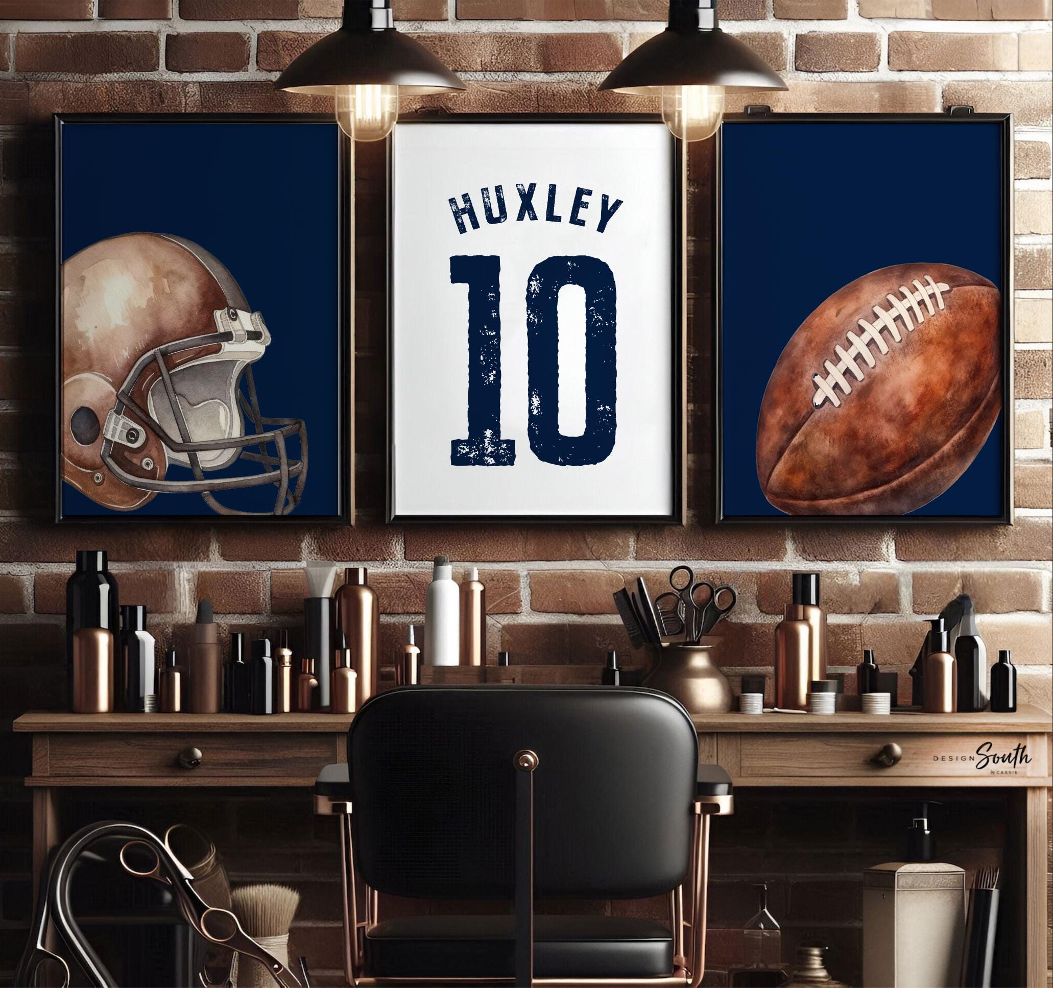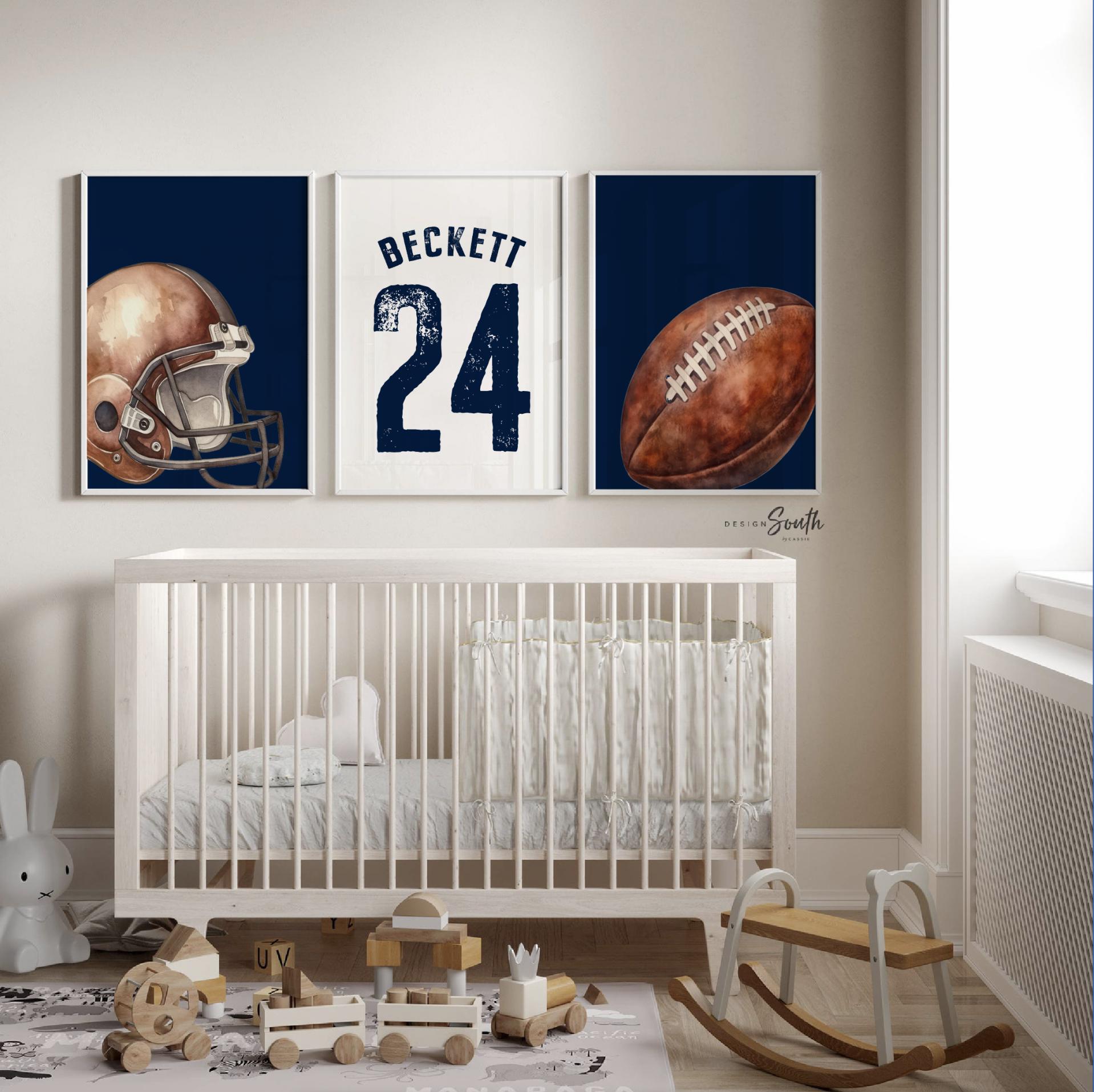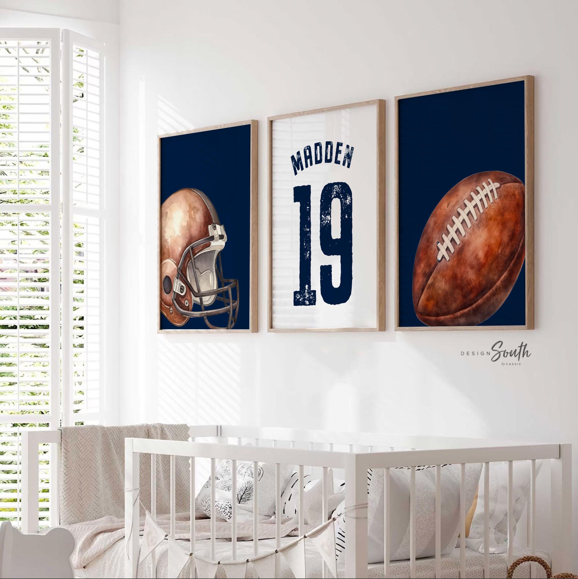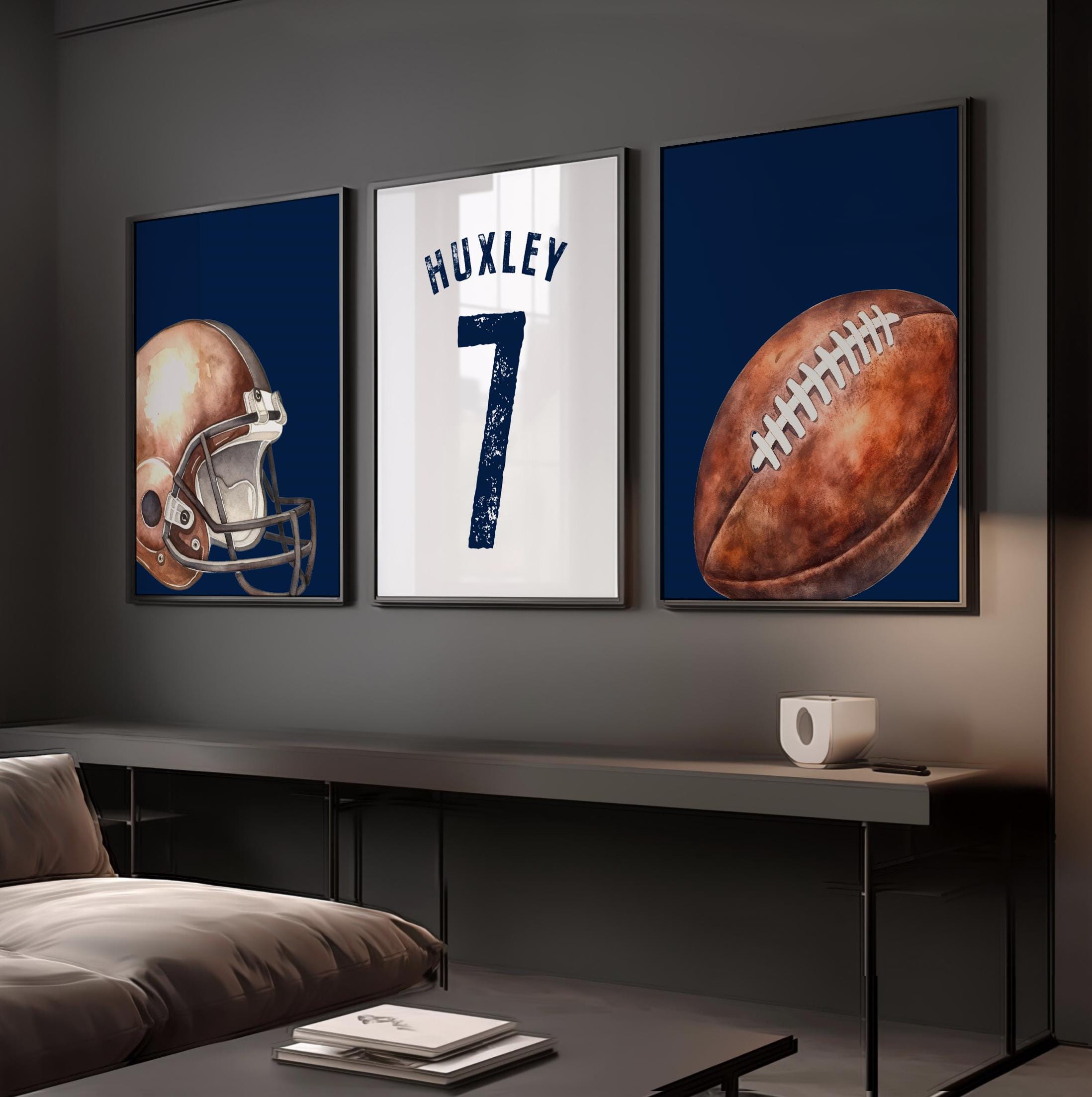 Personalized Football Nursery Prints: Custom Name, Jersey Number, Set of 3