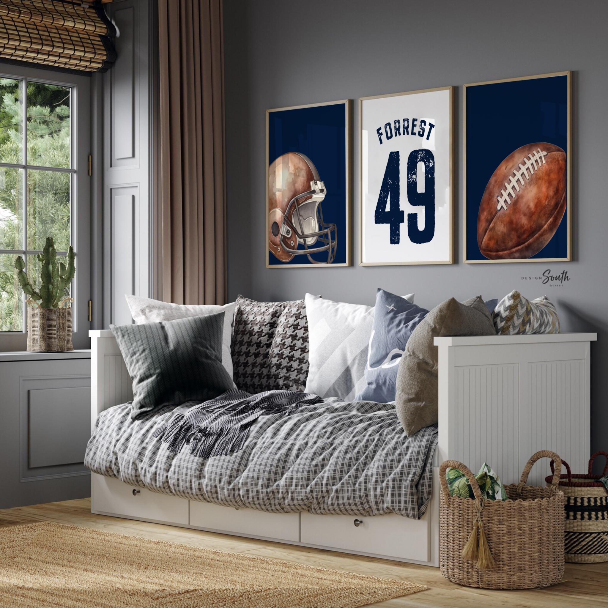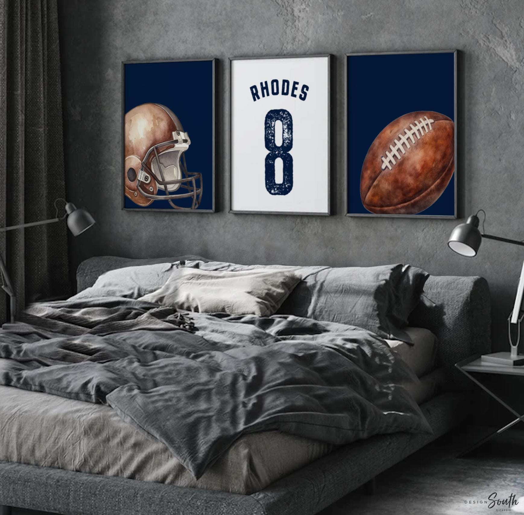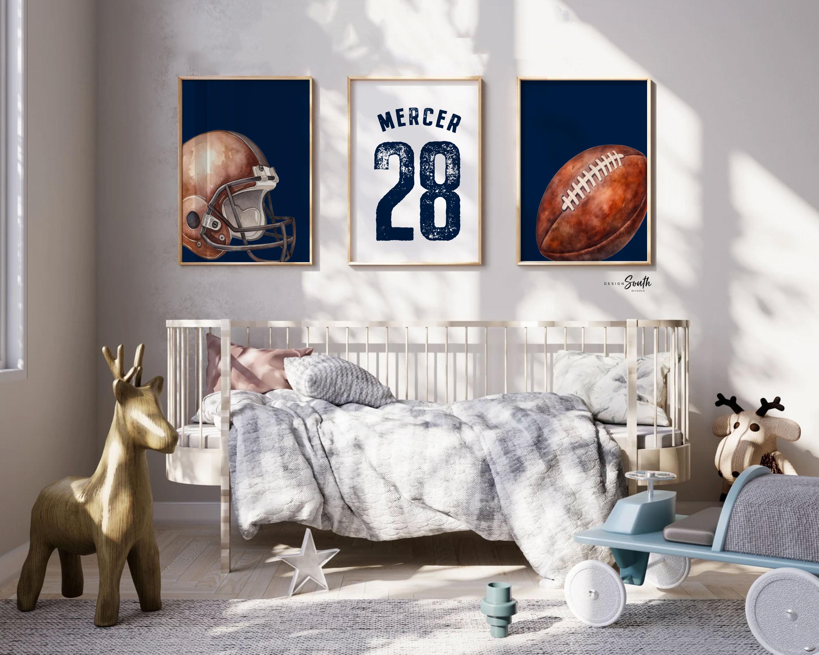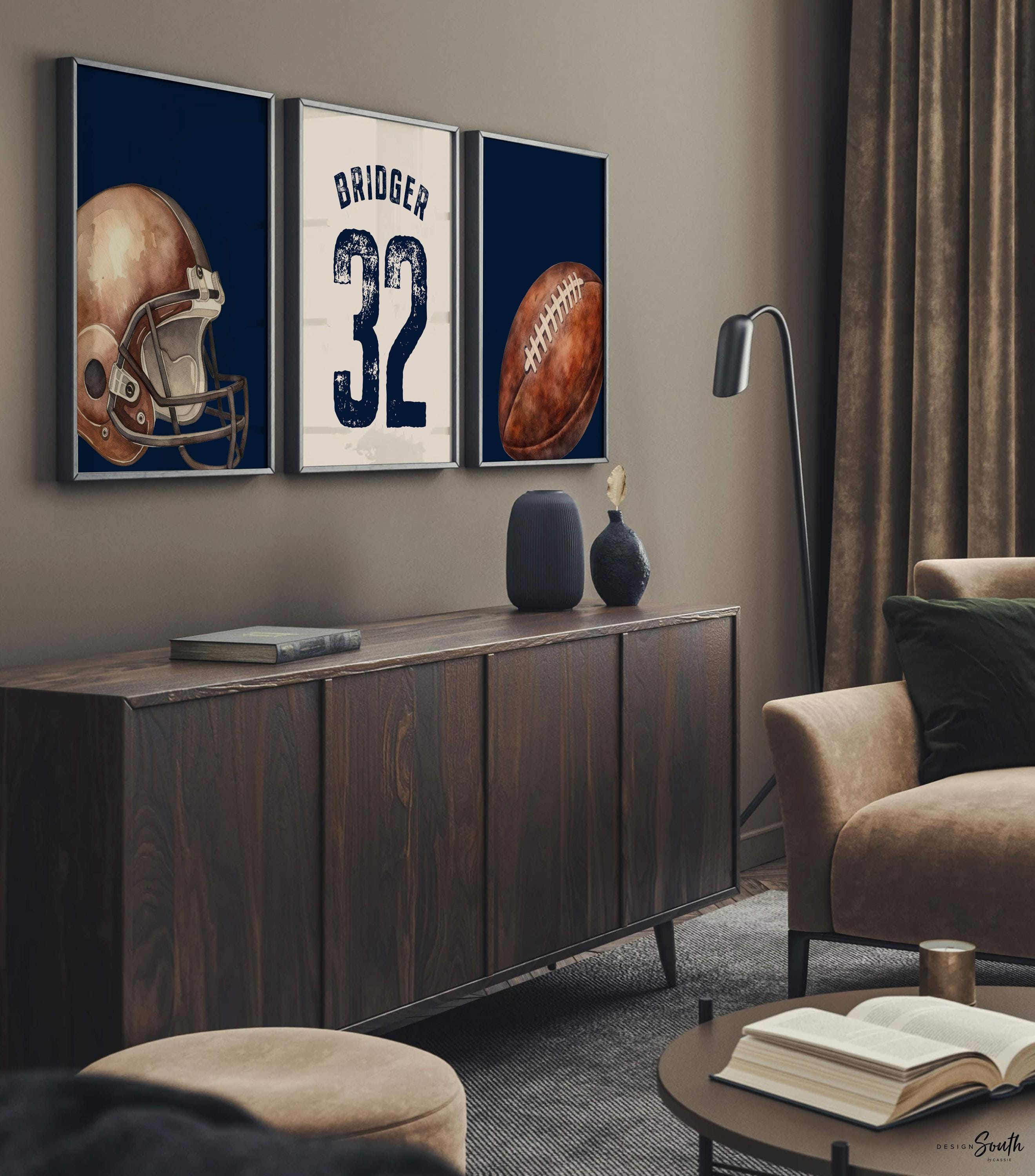 Personalized Football Nursery Prints: Custom Name, Jersey Number, Set of 3