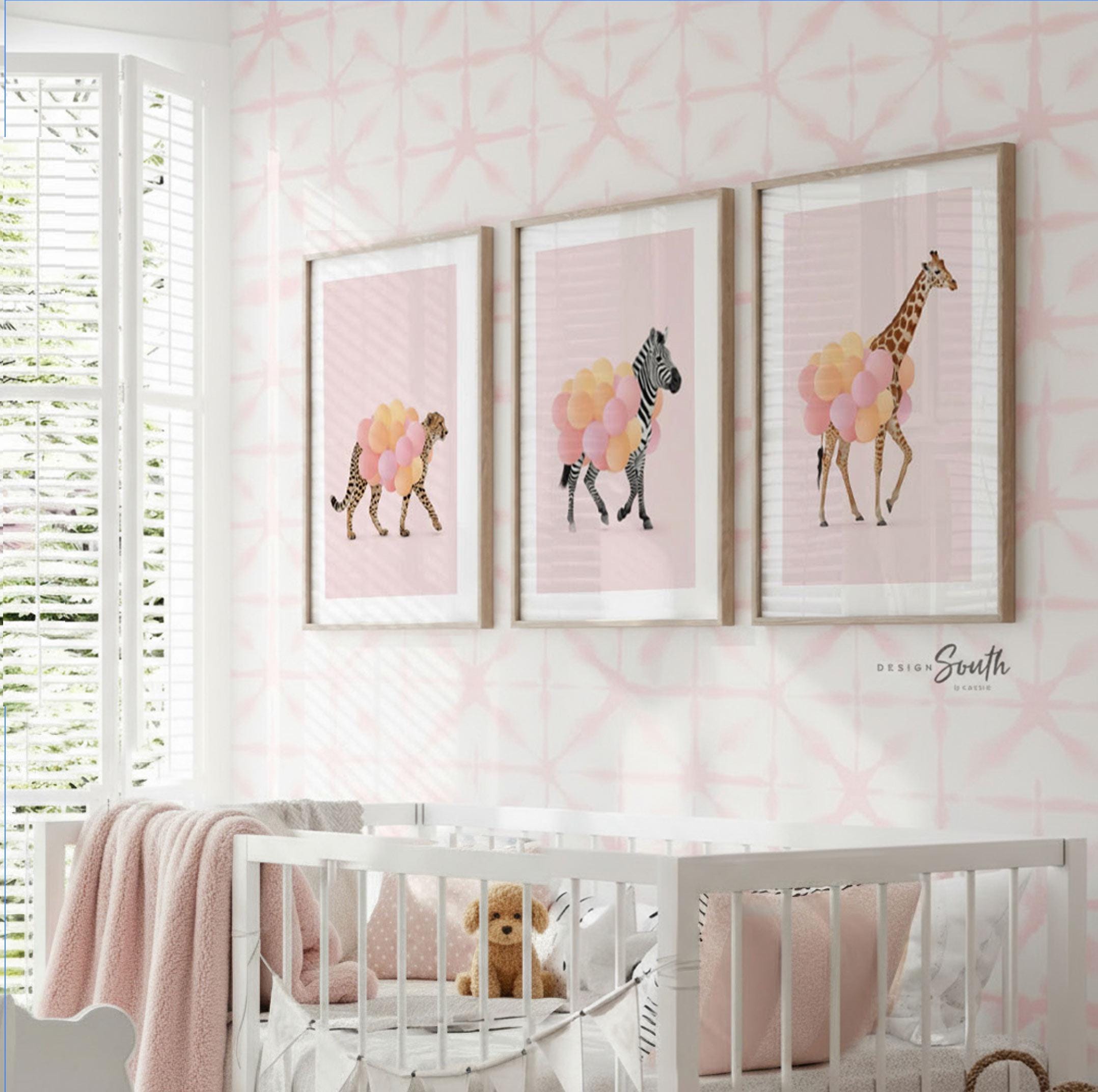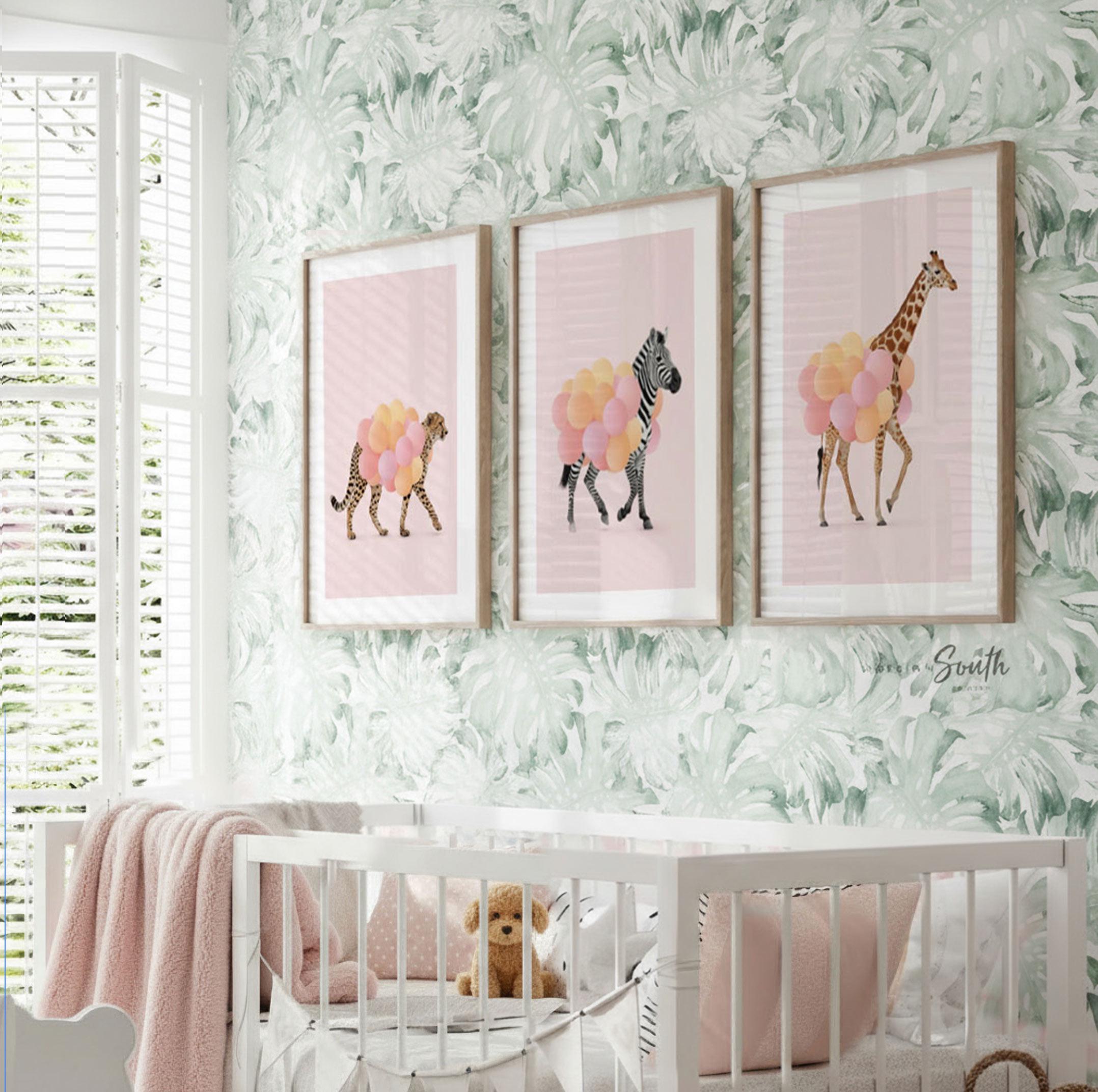 I take pride in creating all of my designs. These chic safari animal themed wall prints will redefine the walls of a girl's nursery, playroom or bedroom. Each design is curated with a passion and vision to create inspired spaces for you and your little ones.